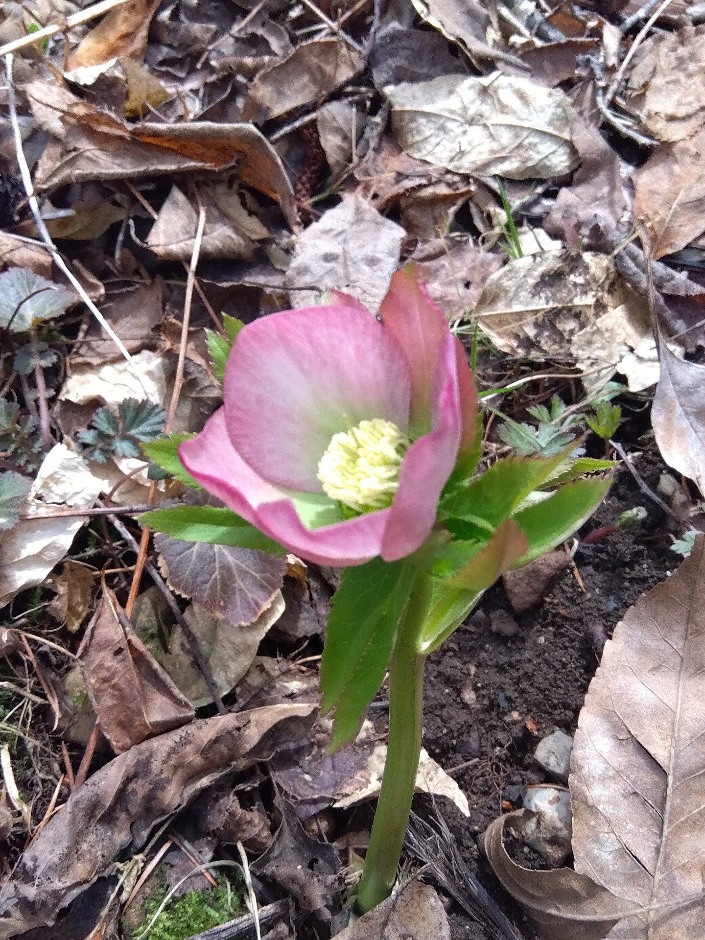 いつの間にかクリスマスローズの花が落ち葉の間から顔を